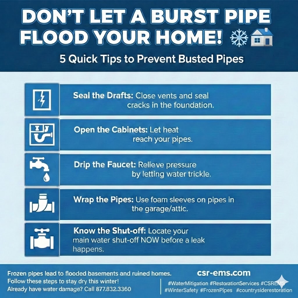 - Contact Countryside Emergency Services (877.832.3360): We provide 24/7 dispatch. Professional mitigation stops damage from spreading.